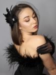 fascynator, woalka, czarna, pióra, kryształy, elegancki, wieczorowy, ślub, wesele, moda damska, akcesoria