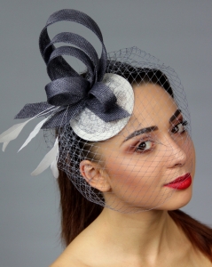 Futurystyczny Fascynator z Woalką w Odcieniach Szarości "Beyonce"