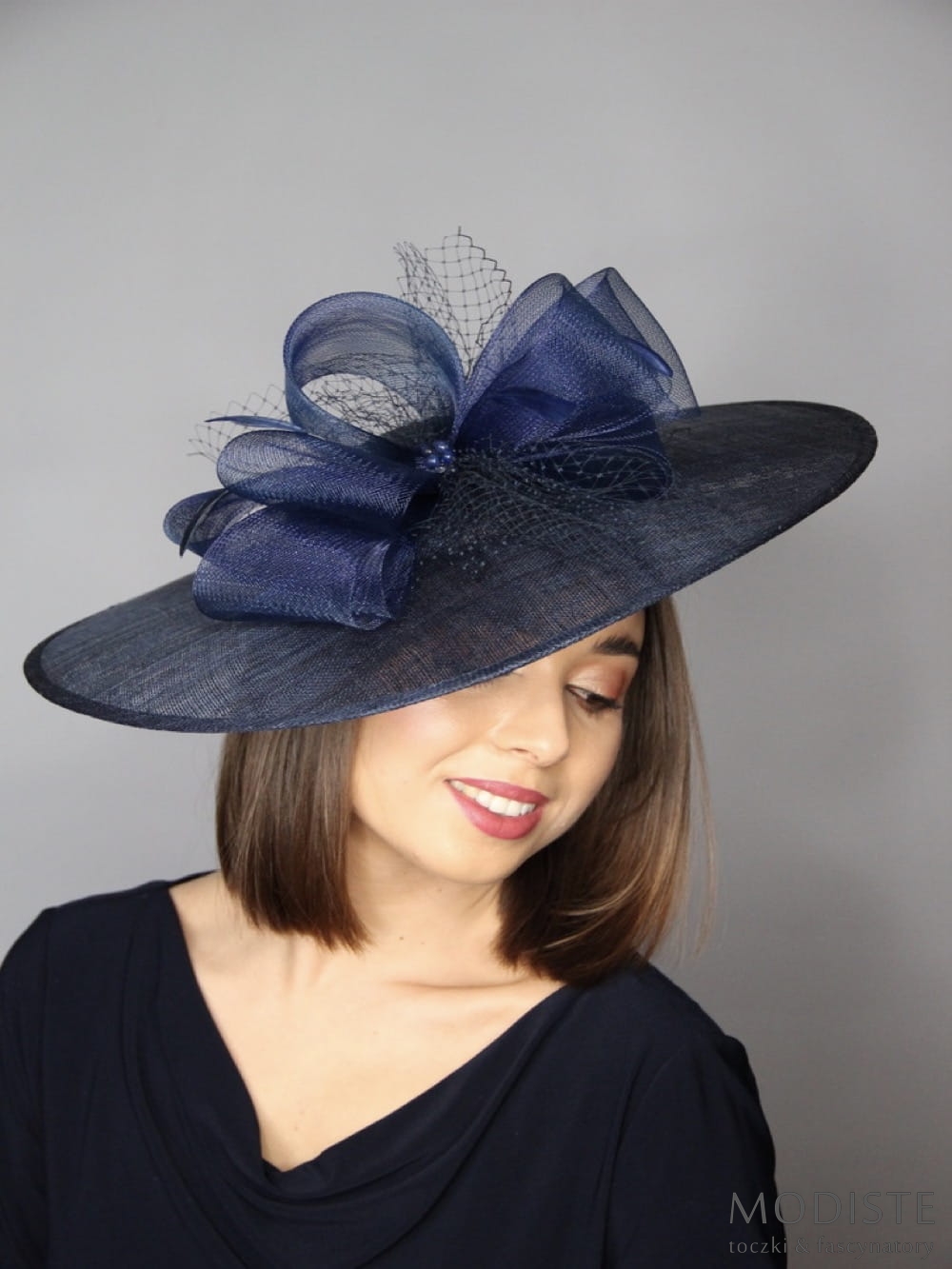 Kapelusz Damski Koktajlowy Granatowy ANNA NAVY CLASSIC