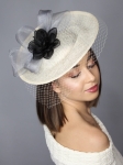 kapelusz koktajlowy, ivory, sinamay, krynolina, kwiat, czarny, asymetryczny, elegancki, wyjątkowy, ręcznie wykonany