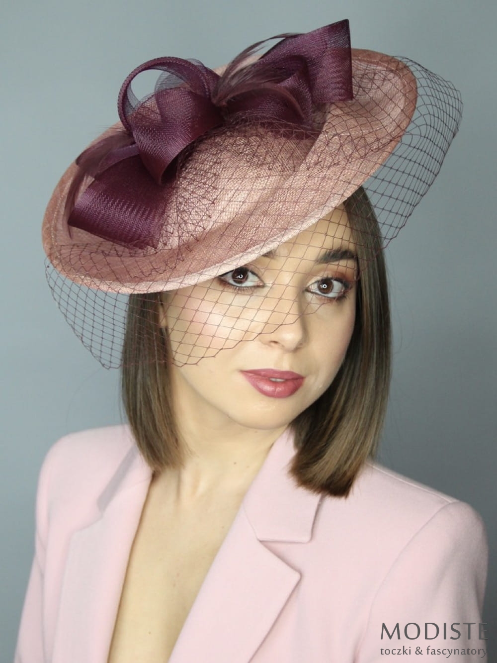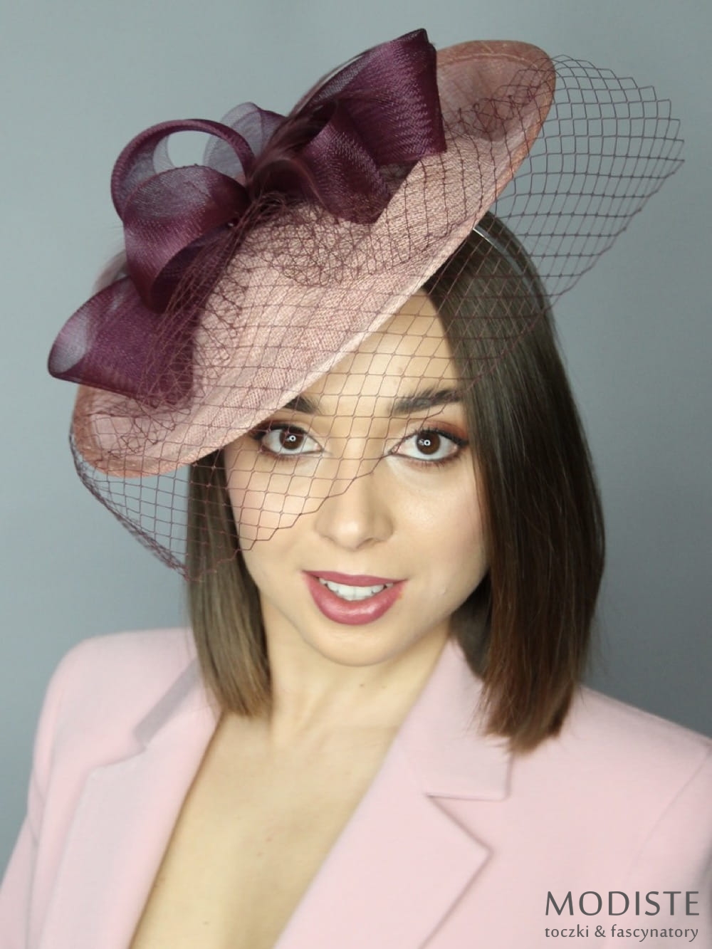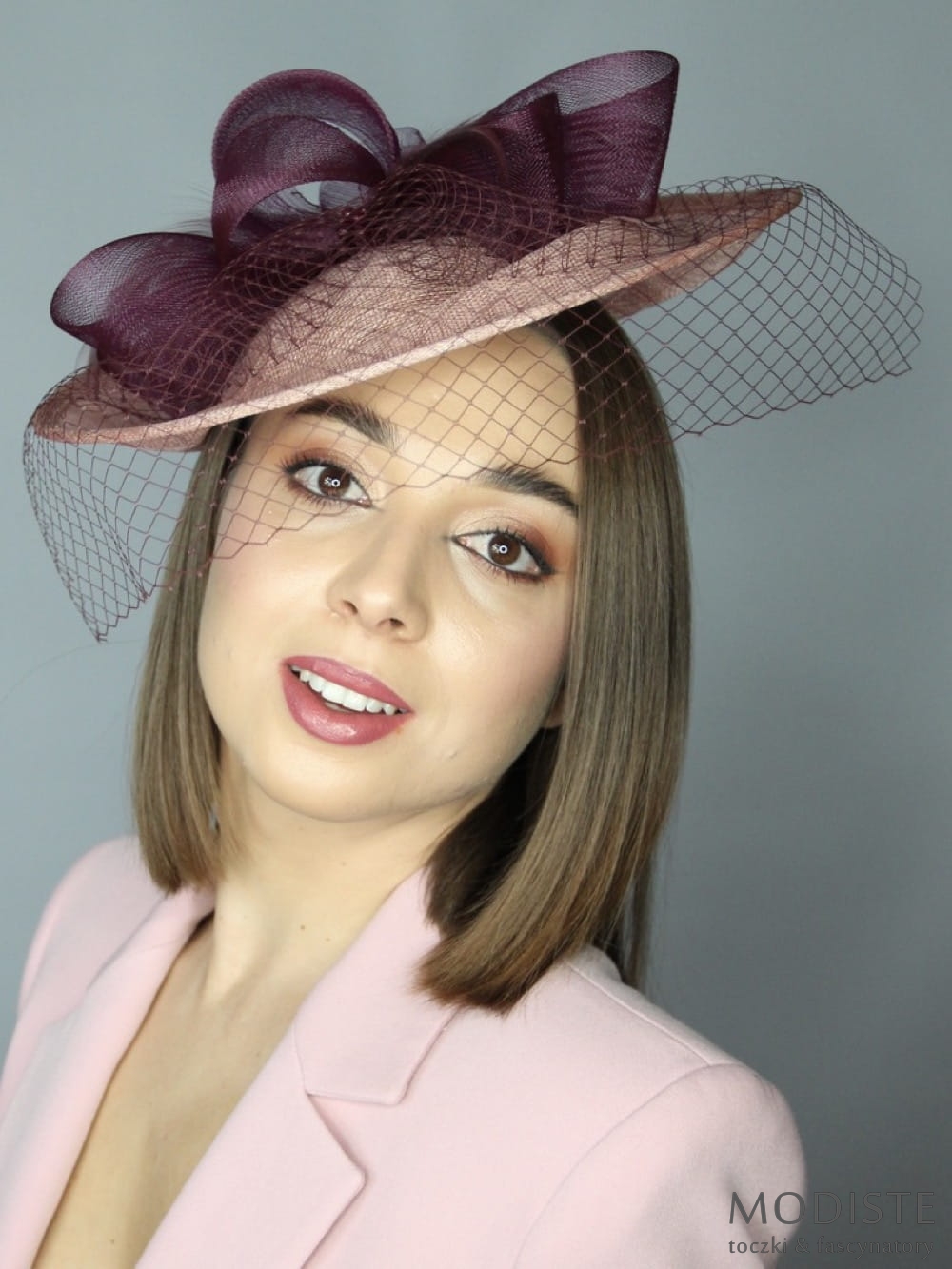 Marzysz o kapeluszu, który doda Twojej stylizacji wyjątkowej elegancji? Nasz łososiowy kapelusz koktajlowy z kokardą w kolorze oberżyny to idealny wybór dla kobiet, które lubią podkreślać swój indywidualny styl.