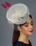 fascynator, brązowy, śmietankowy, sinamay, wachlarz, kwiat, woalka, pióra, różowy, elegancki, oryginalny, wesele, gala, moda damska, akcesoria