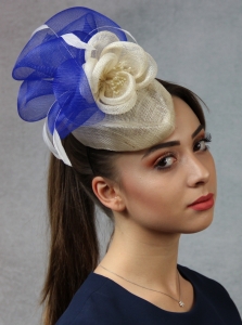 toczek, ivory, sinamay, krynolina, granatowy, biały, pióra, przestrzenny, elegancki, ślub, gala, moda damska, akcesoria