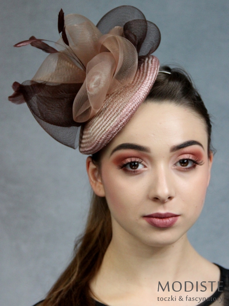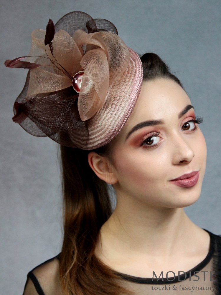 - Krynolina: Warstwy krynoliny w odcieniach ciemnego i jasnego brązu tworzą efektowne upięcie, dodając toczkowi objętości i głębi.