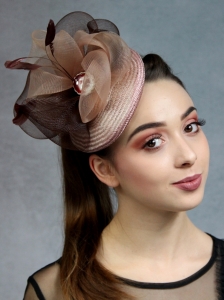 - Kolor: Dominujący jasny brąz nadaje toczkowi ciepłego, naturalnego wyglądu. Kontrastujące odcienie brązowej krynoliny oraz srebrnej opaski tworzą harmonijną kompozycję.