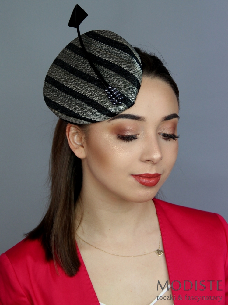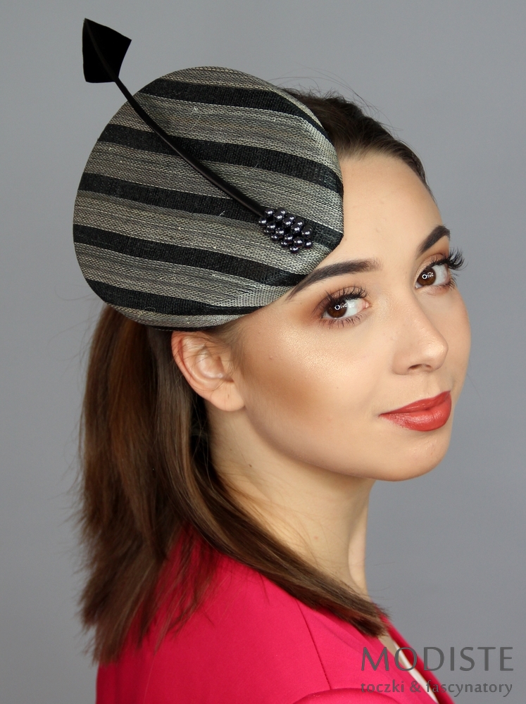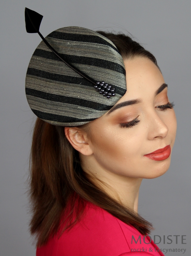 toczek, nietypowy kształt, czarno-szary, pióro, hematyty, awangarda, elegancki